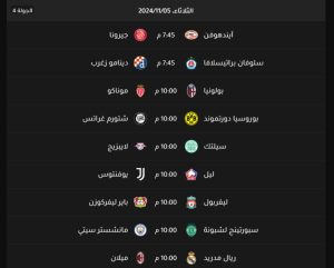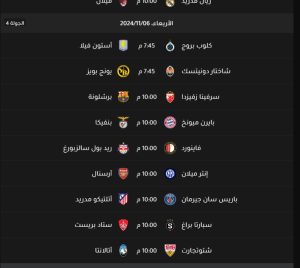 والبداية مع موعد مباراة ليفربول وباير ليفركوزن الألماني والتي تنطلق فى العاشرة مساءاً يوم الثلاثاء الموافق 5/11/2024، وكذلك موعد مباراة ريال مدريد وأيه سي ميلان فى تمام العاشرة فى نفس الموعد، كذلك ستكون موعد مباراة برشلونة فى يوم الأربعاء الساعة العاشرة على ان يكون موعد مباراة الأرسنال وانتر ميلان فى نفس الموعد بالإضافة الى موعد مباراة باريس سان جيرمان وأتلتيكو مدريد فى نفس التوقيت.